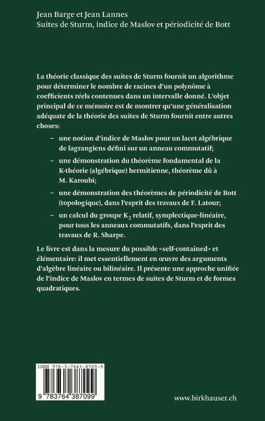 Le livre est dans la mesure du possible « self-contained » et élémentaire: il met essentiellement en oeuvre des arguments d'algèbre linéaire ou bilinéaire. Il présente une approche unifiée de l'indice de Maslov en termes de suites de Sturm et de formes quadratiques.