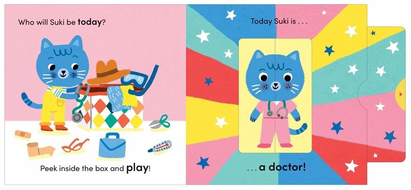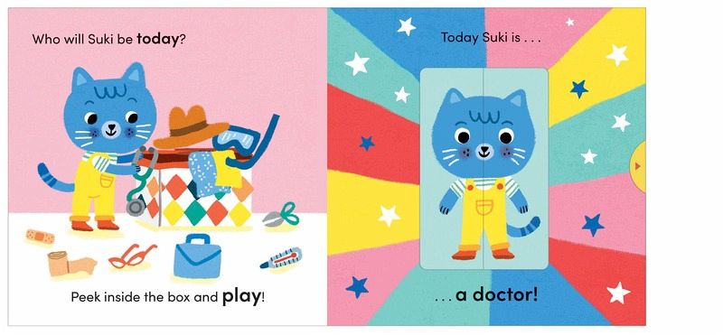 Who will Suki be today? Peek inside the box costume and play! Toddlers will love discovering who Suki Cat will become and then joining in with her dressing-up adventure —where she always saves the day! In Doctor, Suki Cat puts on her scrubs and stethoscope to help people at the hospital! From dancer to doctor, this interactive series of vibrant board books with robust mechanisms is perfect for developing motor skills and inspiring imaginative play. Toddlers will enjoy pushing, pulling, and turning the chunky sliders to take part in the story and bring the action to life! The narrative-driven, rhyming text is perfect for reading aloud to help build book confidence and engagement, while the high level of interaction develops gross and fine motor skills. Dressing up is lots of fun—when Suki can be anyone! Other titles in the series include: Suki Cat: Astronaut, Suki Cat: Dancer, and Suki Cat: Farmer. Scan the Stories Aloud QR code on the back cover to read along with the story!