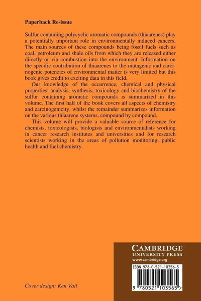 First published in 1990. Sulfur containing polycyclic aromatic compounds (thiaarenes) play a potentially important role in environmentally induced cancers.