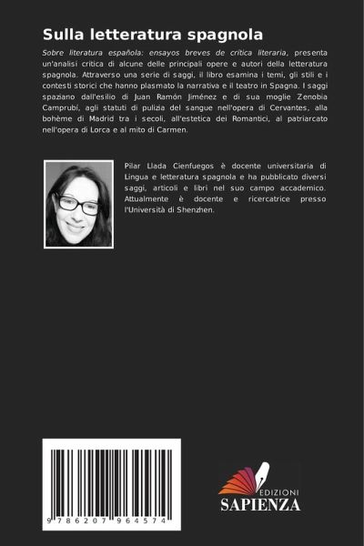 Sobre literatura española: ensayos breves de crítica literaria, presenta un'analisi critica di alcune delle principali opere e autori della letteratura spagnola. Attraverso una serie di saggi, il libro esamina i temi, gli stili e i contesti storici che hanno plasmato la narrativa e il teatro in Spagna. I saggi spaziano dall'esilio di Juan Ramón Jiménez e di sua moglie Zenobia Camprubí, agli statuti di pulizia del sangue nell'opera di Cervantes, alla bohème di Madrid tra i secoli, all'estetica dei Romantici, al patriarcato nell'opera di Lorca e al mito di Carmen.