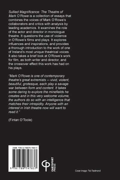 Sullied Magnificence: The Theatre of Mark O'Rowe is a collection of essays that combines the voices of Mark O'Rowe's collaborators and critics with analysis by leading academics. It examines the role of the actor and director in monologue theatre. It questions the use of violence in O'Rowe's films and plays. It explores influences and inspirations, and provides a thorough introduction to the work of one of Ireland's most unique theatrical voices. It also takes a brief look at O'Rowe's work for film, as both writer and director, and the crossover effect this work has had on his plays.