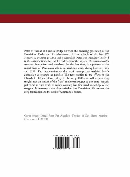 Peter of Verona is a critical bridge between the founding generation of the Dominican Order and its achievements in the schools of the late 13th century. A dynamic preacher and peacemaker, Peter was intimately involved in the anti-heretical efforts of his order and of the papacy. The Summa contra hereticos, here edited and translated for the first time, is a product of the initial flush of Dominican efforts in academic work, dating between 1235-1238. The introduction to this work attempts to establish Peter's authorship as strongly as possible. The text testifies to the efforts of the Church in defense of orthodoxy in the early 1200s, as well providing insight into the nature of the friars' intellectual project at that time. Fiercely polemical, it reads as if the author certainly had first-hand knowledge of the struggles. It represents a significant window into Dominican life between the early foundation and the work of Albert and Thomas.