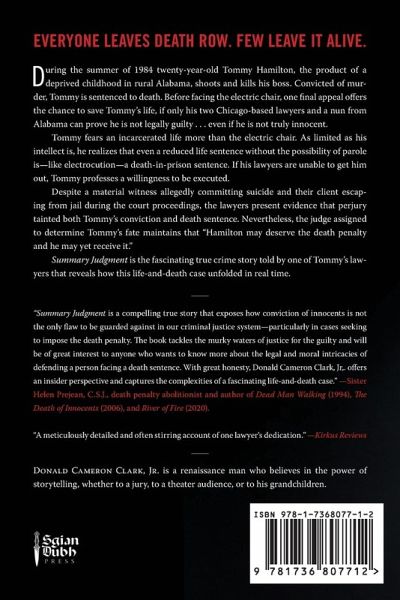 Everyone leaves death row. Few leave it alive. During the summer of 1984 twenty-year-old Tommy Hamilton, the product of a deprived childhood in rural Alabama, shoots and kills his boss. Convicted of murder, Tommy is sentenced to death. Before facing the electric chair, one final appeal offers the chance to save Tommy's life, if only his two Chicago-based lawyers and a nun from Alabama can prove he is not legally guilty...even if he is not truly innocent. Tommy fears an incarcerated life more than the electric chair. As limited as his intellect is, he realizes that even a reduced life sentence without the possibility of parole is-like electrocution-a death-in-prison sentence. If his lawyers are unable to get him out, Tommy professes a willingness to be executed. Despite a material witness allegedly committing suicide and their client escaping from jail during the court proceedings, the lawyers present evidence that perjury tainted both Tommy's conviction and death sentence. Nevertheless, the judge assigned to determine Tommy's fate maintains that "Hamilton may deserve the death penalty and he may yet receive it." Summary Judgment is the fascinating true crime story told by one of Tommy's lawyers that reveals how this life-and-death case unfolded in real time.