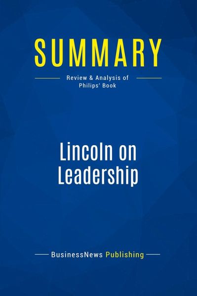 The must-read summary of Donald T. Phillips' book: "Lincoln on Leadership: Executive Strategies for Tough Times". This complete summary of the ideas from Donald T. Phillips' book "Lincoln on Leadership" analyzes Abraham Lincoln's leadership style, his character, his communication techniques and how he moved the country forward. In his book, the author explains how Lincoln was a master of creating consensus and inspiring others. His preferred method was to suggest a course of action, generally through humorous stories with strong morals, and then empower people to use their own initiative. This summary reveals the leadership secrets of Abraham Lincoln, all of which you can learn and apply to your own leadership style. Added-value of this summary: ¿ Save time ¿ Understand key concepts ¿ Expand your leadership skills To learn more, read "Lincoln on Leadership" and find out how you can learn from the greatest leader and start getting the best out of people.