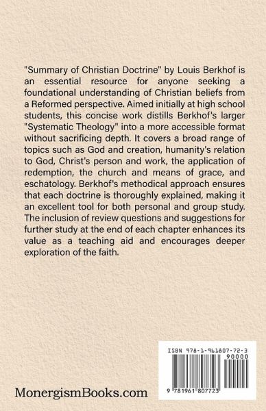 "Summary of Christian Doctrine" by Louis Berkhof is an essential resource for anyone seeking a foundational understanding of Christian beliefs from a Reformed perspective. Aimed initially at high school students, this concise work distills Berkhof's larger "Systematic Theology" into a more accessible format without sacrificing depth. It covers a broad range of topics such as God and creation, humanity's relation to God, Christ's person and work, the application of redemption, the church and means of grace, and eschatology. Berkhof's methodical approach ensures that each doctrine is thoroughly explained, making it an excellent tool for both personal and group study. The inclusion of review questions and suggestions for further study at the end of each chapter enhances its value as a teaching aid and encourages deeper exploration of the faith.