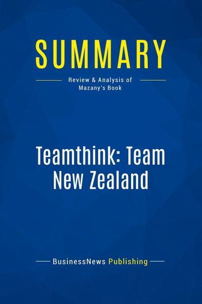 The must-read summary of Pete Mazany's book: "Teamthink: Team New Zealand: The "Black Magic" of Management Behind the 1995 America's Cup Success". This complete summary of the ideas from Pete Mazany's book "Teamthink: Team New Zealand" presents a "vision-driven" model for managing extraordinary teams, projects and organisations. This model for successful project management was exemplified by the success of Team New Zealand in winning the 1995 Americäs Cup. In his book, the author explains that there are four components to this project model and when each of those components is in place, high-quality outcomes can be achieved. This summary is a must-read for all leaders who want to learn how to get the most out of their team. Added-value of this summary: ¿ Save time ¿ Understand key concepts ¿ Expand your knowledge To learn more, read "Teamthink: Team New Zealand" and discover the key to taking your company to the top.