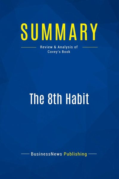 The must-read summary of Stephen Covey's book: "The 8th Habit: From Effectiveness to Greatness". This complete summary of the ideas from Stephen Covey's book "The 8th Habit" presents the updated version of the author's previous book "The 7 Habits of Highly Effective People". In his new book, Covey explains that the eighth habit is not an add-on, but rather something that can enhance all the other areas. The eighth habit of "Voice" encourages readers to move on from finding their own voice and instead help others to find theirs. By doing this, they will become influential and then be able to blend their own voice with others' towards a shared vision. This summary is a must-read for all aspiring leaders who want to inspire and empower those around them. Added-value of this summary: ¿ Save time ¿ Understand key concepts ¿ Expand your leadership skills To learn more, read "The 8th Habit" and discover how you can help others to find their voices and lead them towards a shared goal.