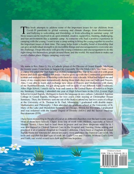 This book attempts to address some of the important issues for our children: from Covid-19 pandemic to global warming and climate change, from discrimination and bullying to welcoming and friendship, or from schooling to summer camp. All those issues can be resolved in an open-minded, creative, supportive, trusting, challenging, and fun environment like a summer camp. As someone who had a positive experience in camping with the young, I want to use a camp setting to bring the young together to resolve the important issues of their time. The camp helps foster a healthy bond of friendship that can give an individual strength to do incredible things and encouragement to overcome any life challenge. I hope this story will give the young confidence and encouragement to do the right things for themselves, people around them, and the world. We need them to make our world a better place. Happy camping, everyone!