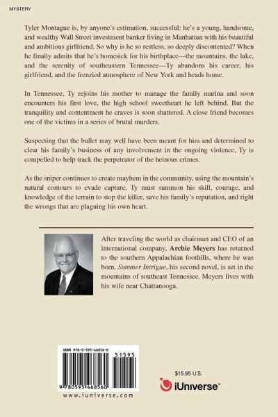 Tyler Montague is, by anyone's estimation, successful: he's a young, handsome, and wealthy Wall Street investment banker living in Manhattan with his beautiful and ambitious girlfriend. So why is he so restless, so deeply discontented? When he finally admits that he's homesick for his birthplace-the mountains, the lake, and the serenity of southeastern Tennessee-Ty abandons his career, his girlfriend, and the frenzied atmosphere of New York and heads home. In Tennessee, Ty rejoins his mother to manage the family marina and soon encounters his first love, the high school sweetheart he left behind. But the tranquility and contentment he craves is soon shattered. A close friend becomes one of the victims in a series of brutal murders. Suspecting that the bullet may well have been meant for him and determined to clear his family's business of any involvement in the ongoing violence, Ty is compelled to help track the perpetrator of the heinous crimes. As the sniper continues to create mayhem in the community, using the mountain's natural contours to evade capture, Ty must summon his skill, courage, and knowledge of the terrain to stop the killer, save his family's reputation, and right the wrongs that are plaguing his own heart.