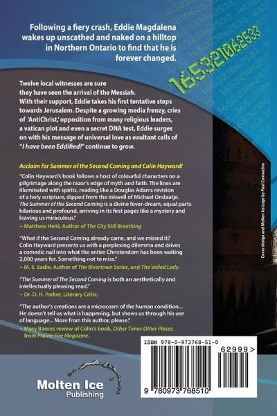 Following a fiery crash, Eddie Magdalena wakes up unscathed and naked on a hilltop in Northern Ontario to find that he is forever changed. Twelve local witnesses are sure they have seen the arrival of the Messiah. With their support, Eddie takes his first tentative steps towards Jerusalem. Despite a growing media frenzy, cries of AntiChrist, opposition from many religious leaders, a vatican plot and even a secret DNA test, Eddie surges on with his message of universal love as exultant calls of 'I have been Eddified' continue to grow.