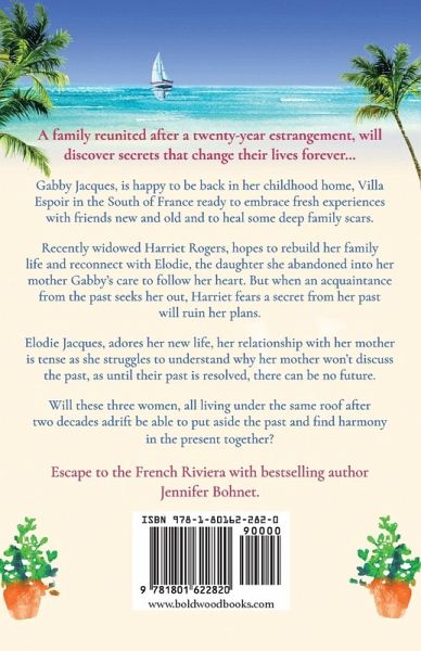 A family reunited after a twenty-year estrangement, will discover secrets that change their lives forever...Pre-order the brand new escapist summer read from international bestseller Jennifer Bohnet! Gabriella Jacques, is happy to be back in her childhood home, Villa Espoir in the South of France ready to embrace fresh experiences with friends new and old and to heal some deep family scars. Recently widowed Harriet Rogers, hopes to rebuild her family life and reconnect with Elodie, the daughter she abandoned into her mother Gabby's care to follow her heart. But when an acquaintance from the past seeks her out, Harriet fears a secret from her past will ruin her plans. Elodie Jacques, adores her new life in her Grandmothers old home as a freelance journalist. Her relationship with her mother is tense as she struggles to understand why her mother won't talk to her about the past, as until their past is resolved, there can be no future. Will these three women, all living under the same roof after two decades adrift be able to put aside the past and find harmony in the present together?