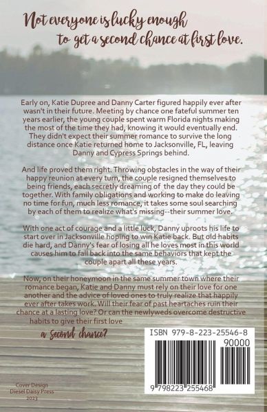 Not everyone is lucky enough to get a second chance at first love. Early on, Katie Dupree and Danny Carter figured happily ever after wasn't in their future. Meeting by chance one fateful summer ten years earlier, the young couple spent warm Florida nights making the most of the time they had, knowing it would eventually end.They didn't expect their summer romance to survive the long distance once Katie returned home to Jacksonville, FL, leaving Danny and Cypress Springs behind. And life proved them right. Throwing obstacles in the way of their happy reunion at every turn, the couple resigned themselves to being friends, each secretly dreaming of the day they could be together. With family obligations and working to make do leaving no time for fun much less romance, it takes some soul searching by each of them to realize what's missing--their summer love. With one act of courage and a little luck, Danny uproots his life to start over in Jacksonville in the hope to win Katie back. But old habits die hard, and Danny's fear of losing all he loves most in this world causes him to fall back into the same behaviors that kept the couple apart all these years. Now, on their honeymoon in the same summer town where their romance began, Katie and Danny must rely on their love for one another and the advice of loved ones to truly realize that happily ever after takes work. Will their fear of past heartaches ruin their chance at a lasting love? Or can the newlyweds overcome destructive habits to give their first love a second chance?