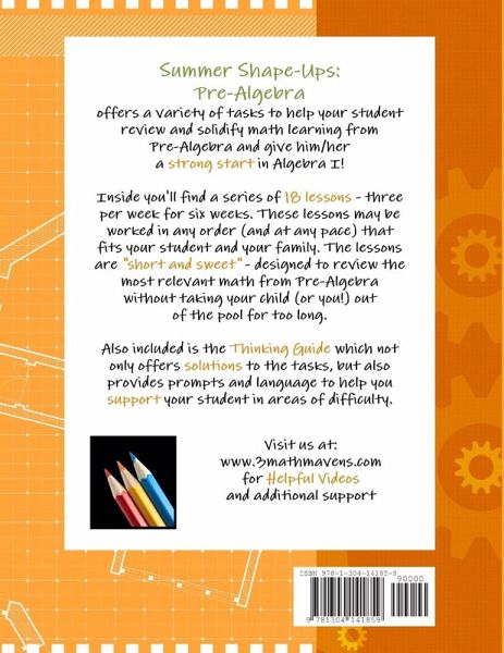 Keep math skills sharp with this review of Pre-Algebra concepts and skills. Eighteen "short and sweet" lessons review the relevant mathematics so that students will find success in Algebra 1. Included "Thinking Guides" provide not only solutions, but also offer instructional guidance which focuses on deep understanding of algebraic concepts so that parents have the help they need to support their child's learning. Free access to online resources is also available.