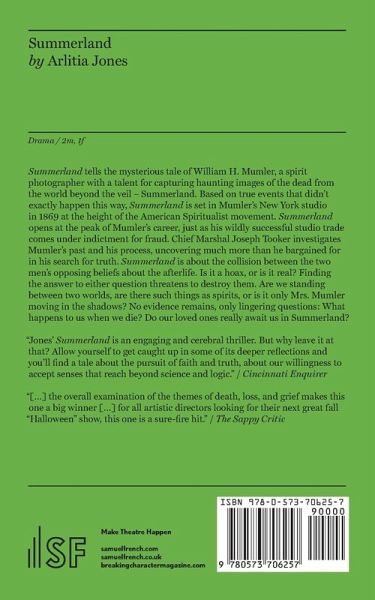 Summerland tells the mysterious tale of William H. Mumler, a spirit photographer with a talent for capturing haunting images of the dead from the world beyond the veil - Summerland. Based on true events that didn't exactly happen this way, Summerland is set in Mumler's New York studio in 1869 at the height of the American Spiritualist movement. Summerland opens at the peak of Mumler's career, just as his wildly successful studio trade comes under indictment for fraud. Chief Marshal Joseph Tooker