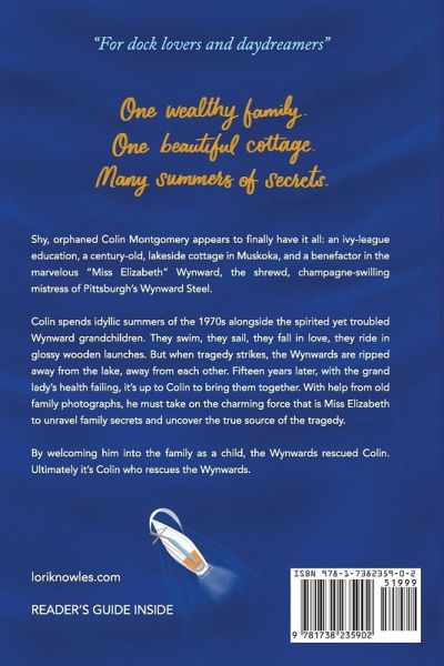 "For dock lovers and daydreamers" One wealthy family. One beautiful cottage. Many summers of secrets. More than a decade after tragedy strikes, Colin Montgomery returns to the Wynward's Muskoka cottage to spend one last summer with the marvelous Miss Elizabeth. As a child, he was saved by the Wynward family. Ultimately it's Colin who saves the Wynwards. Shy, orphaned Colin Montgomery appears to finally have it all: an ivy-league education, a century-old, lakeside cottage in Muskoka, and a benefactor in the marvelous "Miss Elizabeth" Wynward, the shrewd, champagne-swilling mistress of Pittsburgh's Wynward Steel. Colin spends idyllic summers of the 1970s alongside the spirited yet troubled Wynward grandchildren. They swim, they sail, they fall in love, they ride in glossy wooden launches. But when tragedy strikes, the Wynwards are ripped away from the lake, away from each other. Fifteen years later, with the grand lady's health failing, it's up to Colin to bring them together. With help from old family photographs, he must take on the charming force that is Miss Elizabeth to unravel family secrets and uncover what really happened. By welcoming him into the family as a child, the Wynwards rescued Colin. Ultimately it's Colin who rescues the Wynwards. loriknowles.com PRAISE FOR SUMMERS WITH MISS ELIZABETH! "For dock lovers and daydreamers." -Wendie Donabie, Muskoka Author & Artist "This novel is a must-read, powerful tour de force. Knowles skillfully explores the strength and fragility of the human condition, effortlessly weaving themes of love & loss, family, class, and the destructive power of secrets. The writing is rich and lush, taking you on a compelling whirlwind journey of discovery that will leave you breathless." -Cindy Watson, award-winning and best-selling author of The Art of Feminine Negotiation and Out of Darkness "With unforgettable characters, Summers With Miss Elizabeth is an emotionally charged saga in which to lose yourself. -Beverley Brewer, author of Dance Into The Light: a memoir