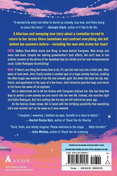 HBO’s Hacks meets Carley Fortune’s Every Summer After in this hilarious and sweeping love story about a comedian forced to return to her Jersey Shore hometown and confront everything she left behind ten summers before—including the man who broke her heart.  "A wonderfully witty love letter to stand-up comedy, true love, and there being no place like home.” —Georgia Clark, author of It Had to Be You Then. Delfina Silva-Miller wants one thing: to leave behind Evergreen, New Jersey and never look back. Despite her adoring grandmother’s best efforts, Del can’t bear to live another moment at the whims of her deadbeat dad (so cliché) and her ever-temperamental crush, Eddie Rodriguez (humiliating).  Now. If there’s one thing Del knows how to do, it’s spin her bad luck into a killer joke. After years of hard work, she’s finally landed a coveted spot at a huge comedy festival, molding the often tragic raw material of her life into comedic gold. But when Del loses her job, boyfriend, and apartment in the span of a few hours, she’s forced to pack her bags and return to the home she swore off at eighteen. Del is determined not to let her history with Evergreen distract her. She has 45 days to perfect a new comedy set and march into her new life. Instead, she marches right into Eddie Rodriguez. But he’s nothing like the boy she left behind ten years ago. As the festival draws closer, Del is faced with the terrifying possibility that everything she’s ever wanted isn’t as far away as it once seemed.   Vividly evoking the boardwalks and beaches of the Jersey Shore, Summertime Punchline is a hilarious, vulnerable, and sweeping love story celebrating the complicated relationships—romantic and not—that impact our lives, for better or worse.  “I laughed, I swooned, I dabbed my eyes. Corrello is a voice to watch.” – Rachel Runya Katz, author of Thank You for Sharing “Vivid, fresh, and wholly singular. Please welcome to the stage… Betty Corrello!” – Julia Whelan, author of Thank You For Listening
