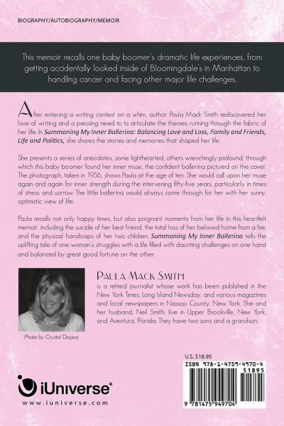 This is an exceptional memoir. Paula shares details of a life fully lived. As in each and every life, there are ups and downs. The key is to find a way to get through each chapter, each hurdle, and each experience whether positive or negative. Paula shares her special way of getting through them. As a young girl, Paula took ballet lessons. At her recital, a photo is taken of her in all of her glory. It is the only childhood picture of her by herself, without siblings. This picture epitomizes the "Inner Ballerina" of Paula, her inner beauty, poise, strength, and confidence. While we each do not have an Inner Ballerina, we do each find a way to cope when necessary. It is calling upon this inner self that allows Paula to cope with the many things she must face throughout her life. From a tragic fire, cancer of first herself then her husband, a serious illness of a child, to many other life experiences, Paula calls upon her Inner Ballerina. Paula writes with heart and with humour. I love this memoir and admire Paula for her strength and honesty.