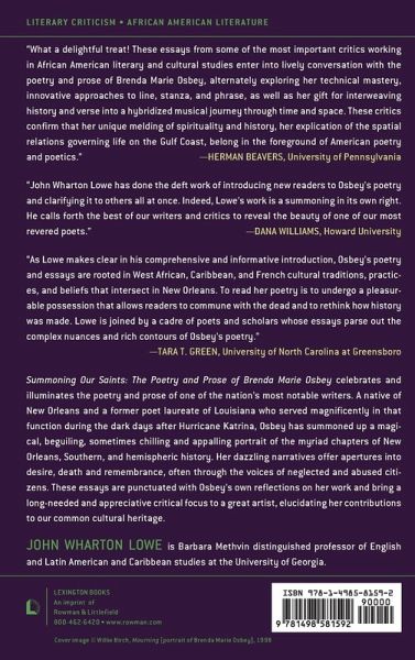This book celebrates and illuminates the poetry and prose of Brenda Marie Osbey. Featuring chapters by distinguished critics of African American poetry and prose, it places particular emphasis on the role of New Orleans, sexuality, gender, madness, death, and remembrance in her oeuvre, and on Osbey's eloquent revision of hemispheric history.