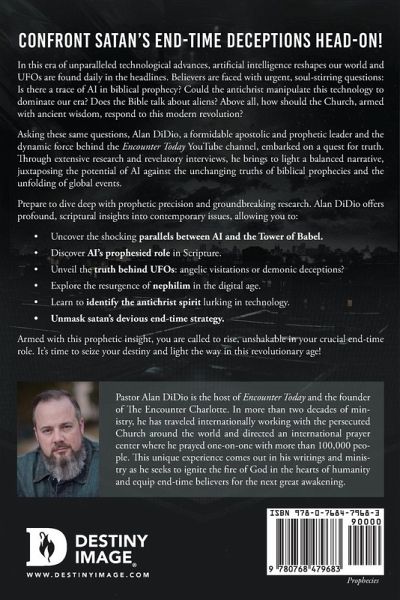Confront Satan's End-Time Deceptions Head-On! In this era of unparalleled technological advances, artificial intelligence reshapes our world and UFOs are found daily in the headlines. Believers are faced with urgent, soul-stirring questions: Is there a trace of AI in biblical prophecy? Could the antichrist manipulate this technology to dominate our era? Does the Bible talk about aliens? Above all, how should the Church, armed with ancient wisdom, respond to this modern revolution? Asking these same questions, Alan DiDio, a formidable apostolic and prophetic leader and the dynamic force behind the Encounter Today YouTube channel, embarked on a quest for truth. Through extensive research and revelatory interviews, he brings to light a balanced narrative, juxtaposing the potential of AI against the unchanging truths of biblical prophecies and the unfolding of global events. Prepare to dive deep with prophetic precision and groundbreaking research. Alan DiDio offers profound, scriptural insights into contemporary issues, allowing you to: Uncover the shocking parallels between AI and the Tower of Babel. Discover AI's prophesied role in Scripture. Unveil the truth behind UFOs: angelic visitations or demonic deceptions? Explore the resurgence of nephilim in the digital age. Learn to identify the antichrist spirit lurking in technology. Unmask satan's devious end-time strategy. Armed with this prophetic insight, you are called to rise, unshakable in your crucial end-time role. It's time to seize your destiny and light the way in this revolutionary age!