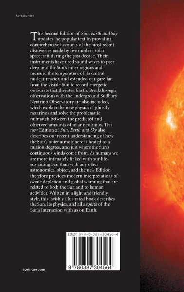 This Second Edition of Sun, Earth and Sky updates the popular text by providing comprehensive accounts of the most recent discoveries made by five modern solar spacecraft during the past decade. Their instruments have used sound waves to peer deep into the Sun's inner regions and measure the temperature of its central nuclear reactor, and extended our gaze far from the visible Sun to record energetic outbursts that threaten Earth. Breakthrough observations with the underground Sudbury Neutrino Observatory are also included, which explain the new physics of ghostly neutrinos and solve the problematic mismatch between the predicted and observed amounts of solar neutrinos. This new edition of Sun, Earth and Sky also describes our recent understanding of how the Sun's outer atmosphere is heated to a million degrees, and just where the Sun's continuous winds come from. As humans we are more intimately linked with our life-sustaining Sun than with any other astronomical object, andthe new edition therefore provides modern interpretations of ozone depletion and global warming that are related to both the Sun and to human activities. Written in a light and friendly style, this lavishly illustrated book introduces the Sun and its physics, and describes all aspects of the Sun's interaction with us on Earth.
