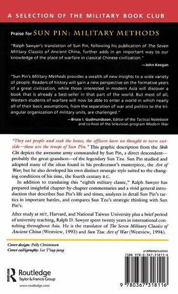 This book introduces and translates the reconstructed Military Methods attributed to Sun Pin and recovered from a Han dynasty tomb some two decades ago, describing Sun Pin's life and times and analyzing Sun Pin's tactics in important battles.