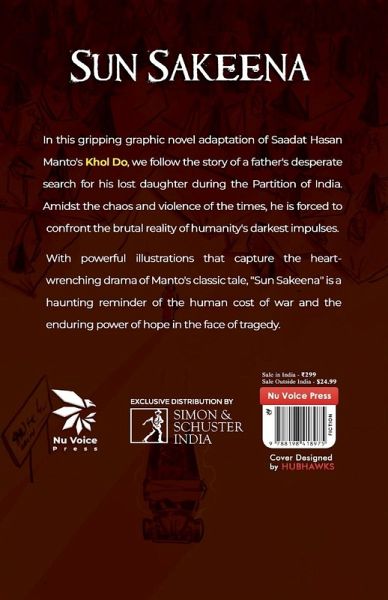 In this gripping graphic novel adaptation of Saadat Hasan Manto's "Khol Do", we follow the story of a father's desperate search for his lost daughter during the Partition of India. Amidst the chaos and violence of the times, he is forced to confront the brutal reality of humanity's darkest impulses. With powerful illustrations that capture the heart-wrenching drama of Manto's classic tale, "Sun Sakeena" is a haunting reminder of the human cost of war and the enduring power of hope in the face of tragedy.