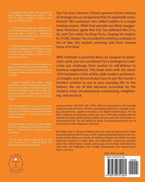 Winner of the 14th Annual National Indie Excellence Book Award (Philosophy Category)!2020 International Book Awards Finalist (Best New Non-Fiction category)!2020 ForeWord INDIES Award finalist (Best War & Military Non-Fiction Category)! From the bestselling authors of The Little Black Book of Violence... "...this edgy book is packed with useful examples of feasible strategy and tactics" -- Nir "300" B., Israeli counterterror operative and owner of LOTAR Combat "...if you had to choose one variant of Sun Tzu's collected work, this one should be at the top of the pile... I loved it!" -- Jeffrey-Peter Hauck, MSc, JD, Police SGT (Ret.), LPI, CPT USA, Professor of Criminal Justice "...a fresh perspective to the ageless wisdom of Sun Tzu by adding a touch of modern in easy to digest short narratives." -- Andrew Lange, US Army Combat Veteran; VP Business Development, Sitel Group "...timeless principles transcend warfare and apply to competitive situations of all kinds." -- Alain Burrese, J.D., Director of Active Defense Training for Reflex Protect, Author of Survive a Shooting "...I began devouring the pages, copying down the For the Win statements and pasting them across my office. In a matter of hours, my attitude transformed and I felt armed, prepared and excited." -- Mary Zampino, VP, Content, Research, & Analytics, Sourcing Industry Group "This book addresses a major gap in current business literature by combining business theories such as Porter's Five Forces with historical military strategies." -- R. Reis Sherin, Doctorate of Management "A great desktop companion for the strategist in a never-challenging and turbulent environment." -- David A. Davies, Security Consultant and Author "Put this book on your Must-Read list! You lose--if you don't!"-- Canda S. Rozier, SVP Global Procurement & Real Estate Sun Tzu was a famous Chinese general whose mastery of strategy was so exceptional that he reportedly transformed 180 courtesans into skilled soldiers in a single training session. While that episode was likely exaggerated, historians agree that Sun Tzu defeated the Ch'u, Qi, and Chin states for King Ho-Lu, forging his empire. In 510 BC, Master Tzu recorded his winning strategies in Art of War, the earliest surviving and most revered tome of its kind. With methods so powerful they can conquer an adversary's spirit, you can use Master Tzu's strategies to overcome any challenge, from warfare to self-defense to business negotiations. This book starts with the classic 1910 translation of Art of War, adds modern and historical insight, and demonstrates how to put the master's timeless wisdom to use in your everyday life. In this fashion, the Art of War becomes accessible for the modern mind, simultaneously entertaining, enlightening, and practical. Lawrence Kane, COP-GOV, CSP, CSMP, CIAP was inducted into SIG Sourcing Supernova Hall of Fame in 2018 for pioneering leadership in strategic sourcing, procurement, supplier innovation, and digital transformation. He has been studying and teaching martial arts since 1970, often putting what he learned into action while working stadium security part time. He has been interviewed by FOX, The Jim Bohannon Show, Computerworld, Forbes, Art of Procurement, Police Magazine, and more. Kris Wilder, BCC is a Board-Certified Coach who was inducted into the United States Martial Arts Hall of Fame in 2018. A former National Representative for the University of New Mexico's Institute of Traditional Martial Arts (ITMA), he holds black belt rankings in karate, judo, and taekwondo, conducting seminars across the United States, Canada, and Europe. He has been interviewed by CNN, FOX, The Huffington Post, Thrillist, Nickelodeon, The Howard Stern Show, and more.