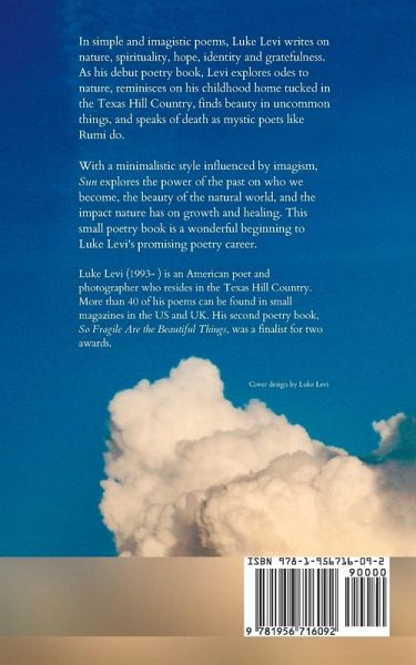 In simple and imagistic poems, Luke Levi writes on nature, spirituality, hope, identity and gratefulness. As his debut poetry book, Levi explores odes to nature, reminisces on his childhood home tucked in the Texas Hill Country, finds beauty in uncommon things, and speaks of death as mystic poets like Rumi do. With a minimalistic style influenced by imagism, Sun explores the power of the past on who we become, the beauty of the natural world, and the impact nature has on growth and healing. This small poetry book is a wonderful beginning to Luke Levi's promising poetry career.