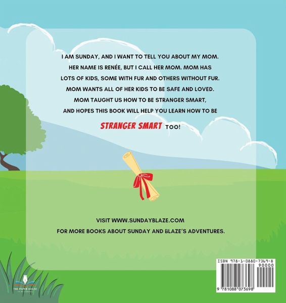I am Sunday, and I want to tell you about my mom. Her name is Renée, but I call her Mom. Mom has lots of kids, some with fur and others without fur. Mom wants all of her kids to be safe and loved. Mom taught us how to be Stranger Smart, and hopes this book will help you learn how to be STRANGER SMART too! ¿¿¿Visit www.sundayblaze.com for more books about Sunday and Blaze's adventures.