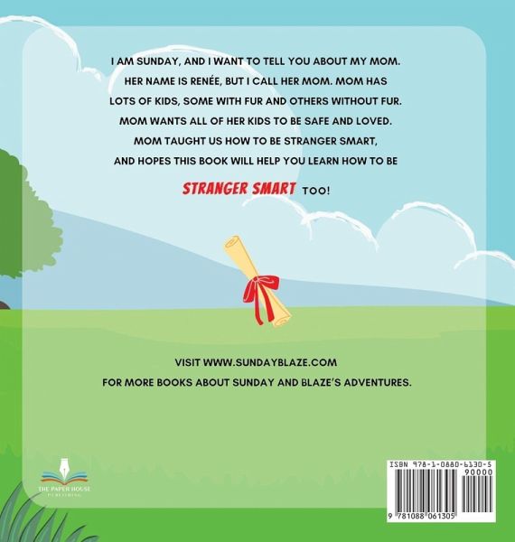 I am Sunday, and I want to tell you about my mom. Her name is Renée, but I call her Mom. Mom has lots of kids, some with fur and others without fur. Mom wants all of her kids to be safe and loved. Mom taught us how to be Stranger Smart, and hopes this book will help you learn how to be STRANGER SMART too! ¿¿¿Visit www.sundayblaze.com for more books about Sunday and Blaze's adventures.