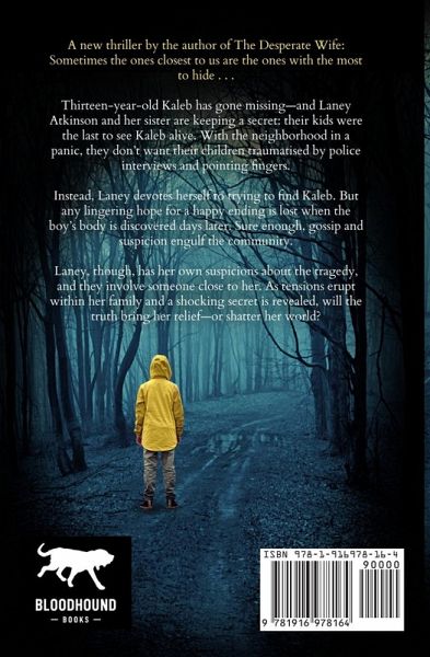 A new thriller by the author of The Desperate Wife: Sometimes the ones closest to us are the ones with the most to hide . . . Thirteen-year-old Kaleb has gone missing-and Laney Atkinson and her sister are keeping a secret: their kids were the last to see Kaleb alive. With the neighbourhood in a panic, they don't want their children traumatised by police interviews and pointing fingers. Instead, Laney devotes herself to trying to find Kaleb. But any lingering hope for a happy ending is lost when the boy's body is discovered days later. Sure enough, gossip and suspicion engulf the community. Laney, though, has her own suspicions about the tragedy, and they involve someone close to her. As tensions erupt within her family and a shocking secret is revealed, will the truth bring her relief-or shatter her world?