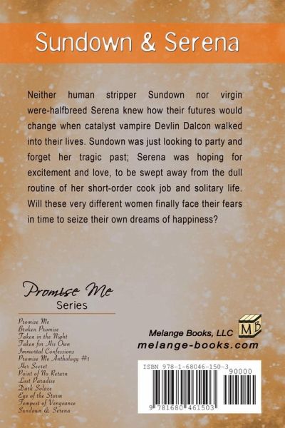 Neither human stripper Sundown nor virgin were-halfbreed Serena knew how their futures would change when catalyst vampire Devlin Dalcon walked into their lives. Sundown was just looking to party and forget her tragic past; Serena was hoping for excitement and love, to be swept away from the dull routine of her short-order cook job and solitary life. Will these very different women finally face their fears in time to seize their own dreams of happiness?