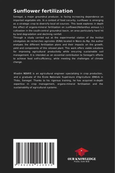 Senegal, a major groundnut producer, is facing increasing dependence on imported vegetable oils. In a context of food security, sunflower is emerging as a strategic crop to diversify local oil sources. This book explores in depth the effect of organo-mineral fertilization on sunflower(Helianthus annuus L.) cultivation in the south-central groundnut basin, an area particularly hard hit by land degradation and declining rainfall.Through a study carried out at the experimental station of the Institut sénégalais de recherches agricoles (ISRA) located in Nioro du Rip, the author analyzes the different fertilization plans and their impacts on the growth, yield and components of this oilseed plant. This work offers viable solutions for improving agricultural productivity while ensuring sustainable soil management. It is intended as an essential contribution to Senegal's efforts to achieve food self-sufficiency, while meeting the challenges of climate change.