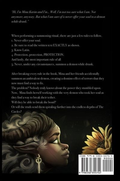 From the author of The Taking of Persephone Series, Ambrosia R. Harris. "Hi, I'm Mina Karim and I'm... Well, I'm not too sure what I am. Not anymore anyway. But what I am sure of, is never, under any circumstances, offer your soul to a demon while drunk."\ Mina breaks every rule in the book when she accidentally summons an ambivalent demon who grants them four magical gifts to her and her friends for their souls. However, she wakes up with a bit more than she bargained for. Tethered with the very demon whose hand she shook, Mina must work with him to find a way to break their bond. But they soon find her necromancy powers develop into something more dangerous. Erius set out to complete a task he had done many times, but this time, the scent of the mortal he was sent to capture is captivating and delicious, a snack begging to be devoured. He soon regrets his thievery when he is unable to return to his realm and instead placed back alongside the mortal he was to capture. Propelled into the demon's world, he and Mina race to keep her new identity a secret from those who would seek to harm her. Will they be able to break the bond? Or will the truth send them spiraling further into the endless depths of the Six Circles? Sunflower in the Shadows is the first book in this adult dark fantasy series. Pulling you into the magical world of the Six Circles where you'll find modern-day witches, cranky demons, and a magical adventure that will keep you turning the page for more. Contains gore, scenes that may seem frightening or grotesque to some readers, and is open door. It is intended for mature audiences only. 18+ Reader Discretion is advised.