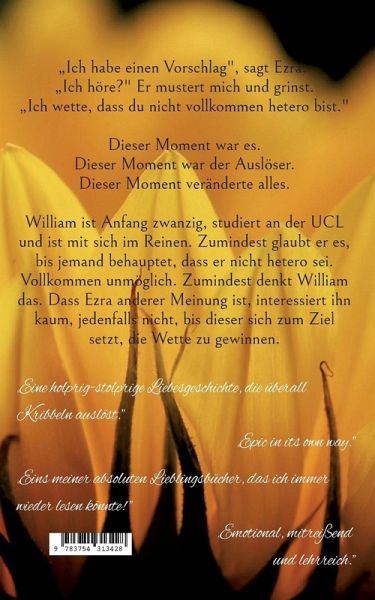 Alles ist gut - zumindest bis Ezra in Williams Leben auftaucht.Eingeschriebener Student, ein fester Job, eine coole Freundesgruppe. Und von der Liebe hält William nicht viel. Nach einigen Drinks behauptet Ezra allerdings, William sei nicht hetero. Überzeugt davon, dass Ezra Unrecht hat, geht William eine Wette mit ihm ein, ohne damit zu rechnen, dass Ezra diese Wette ebenfalls gewinnen will.