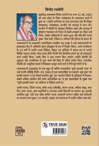 सुप्रसिद्ध नाटककार विनोद रस्तोगी का जन्म 12 मई, 1923 को उत्तर प्रदेश के जिला फर्रुखाबाद के शमसाबाद कस्बे में हुआ था। उन्होंने प्रारम्भिक से उच्च (स्नातक) तक की शिक्षा शमसाबाद, फर्रुखाबाद, कन्नौज एवं कानपुर में प्राप्त की । कन्नौज में नौटंकी के बादशाह त्रिमोहन लाल और कानपुर में श्रीकृष्ण पहलवान को निकट से देखने-समझने का मौका उन्हें मिला। लेखन कविताओं से आरंभ हुआ और धीरे-धीरे नाटक मुख्य विधा बनी। निर्देशन व अभिनय की प्रतिभा के कारण ही आकाशवाणी के तत्कालीन महानिदेशक जगदीश चन्द्र माथुर ने उन्हें आकाशवाणी के इलाहाबाद केंद्र में असिस्टेंट ड्रामा प्रोड्यूसर के रूप में नियुक्त किया। अपने कार्यकाल के 22 वर्षों में उन्होंने नाट्य निर्देशन, लेखन एवं अभिनय में समान रूप से अपनी विशिष्ट पहचान बनाई। लोक नाट्य शैली नौटंकी को लोकप्रिय बनाने का जो महत्वपूर्ण कार्य उन्होंने किया, उसके लिए वे सदा स्मरण किए जाएंगे। उन्होंने नौटंकी को फूहड़ता और अश्लीलता से मुक्त करने की दिशा में अनेक प्रयोग किए। पारंपरिक नौटंकी को आधुनिक संदर्भ में लिखकर प्रस्तुत करने वाले वे गिने-चुने लोगों में थे। आकाशवाणी इलाहाबाद के एक बहुत ही चर्चित धारावाहिक 'मुंशी इतवारी लाल' से उन्हें काफी प्रसिद्धि मिली। सन् 1964 से इस धारावाहिक का प्रसारण शुरू हुआ एवं इसकी लगभग 150 किस्तें प्रसारित हुईं। यह भारतीय रेडियो के इतिहास में संभवतः सबसे अधिक प्रसारित होने वाला धारावाहिक था । वे इस धारावाहिक के मुख्य पात्र "मुंशी इतवारी लाल" का अभिनय व निर्देशन करते थे।