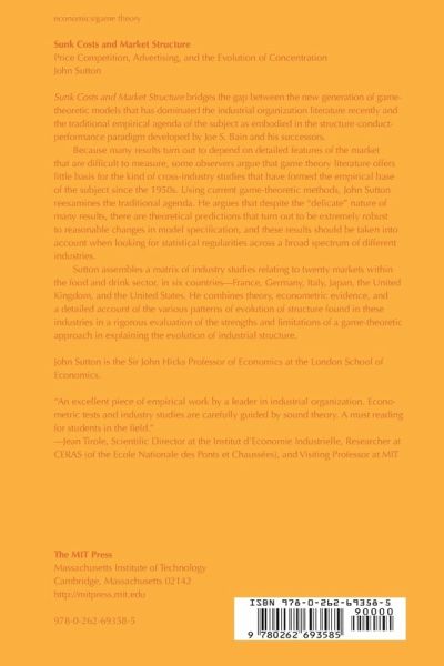 Sunk Costs and Market Structure bridges the gap between the new generation of game theoretic models that has dominated the industrial organization literature over the past ten years and the traditional empirical agenda of the subject as embodied in the structure-conduct-performance paradigm developed by Joe S. Bain and his successors. The new theoretical literature has engendered pessimism in recent years because many results turn out to depend on detailed features of the market that are difficult to measure. This has led many observers to argue that the new literature offers little basis for the kind of cross-industry studies that have formed the empirical base of the subject since the 1950s. Using current game-theoretic methods, John Sutton reexamines the traditional agenda. He argues that despite the "delicate" nature of many results, there are theoretical predictions that turn out to be extremely robust to reasonable changes in model specification, and these results should be taken into account when looking for statistical regularities across a broad spectrum of different industries. Sutton draws on a wide range of historical sources and on an intensive program of company interviews to assemble a matrix of industry studies relating to twenty markets within the food and drink sector, in six countries - France, the Federal Republic of Germany, Italy, Japan, the United Kingdom and the United States. He combines theory, econometric evidence, and a detailed account of the various patterns of evolution of structure found in these industries in a rigorous evaluation of the strengths and limitations of a game-theoretic approach in explaining the evolution of industrial structure.