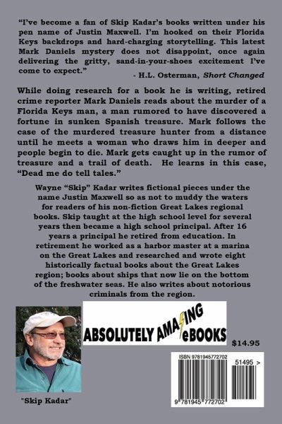 "I've become a fan of Skip Kadar's books written under his pen name of Justin Maxwell. I'm hooked on their Florida Keys backdrops and hard-charging storytelling. This latest Mark Daniels mystery does not disappoint, once again delivering the gritty, sand-in-your-shoes excitement I've come to expect." - H.L. Osterman, Short Changed While doing research for a book he is writing, retired crime reporter Mark Daniels reads about the murder of a Florida Keys man, a man rumored to have discovered a fortune in sunken Spanish treasure. Mark follows the case of the murdered treasure hunter from a distance until he meets a woman who draws him in deeper and people begin to die. Mark gets caught up in the rumor of treasure and a trail of death. He learns in this case, "Dead me do tell tales."