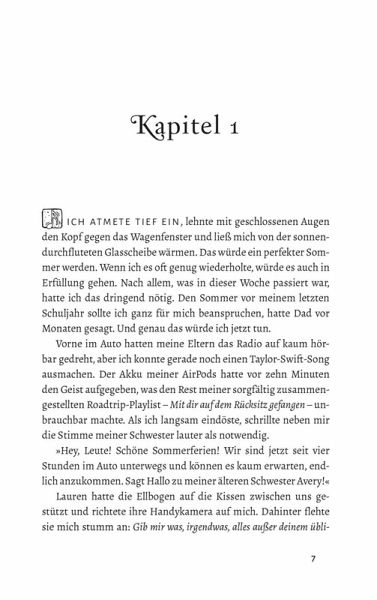 Avery liebt es, sich in Musik zu verlieren. Aber nach einem Streit mit ihrer besten Freundin können selbst ihre Playlists sie nicht ablenken. Und es hilft auch nicht, dass ihre Eltern sie und ihre hyperaktive Schwester für zwei Monate »Spaß« in ein abgelegenes Familien-Resort schleppen. Avery will den Sommer schon abschreiben, da trifft sie Brooks, den Gitarristen der Camp-Band - sehr attraktiv und absolut tabu. Trotzdem landen sie ständig zusammen am Lagerfeuer. Oder bei den Bandproben. Bald wird klar, dass sie sich gegenseitig neue Wege zeigen können - mit ein wenig Mut und ganz viel Herz.