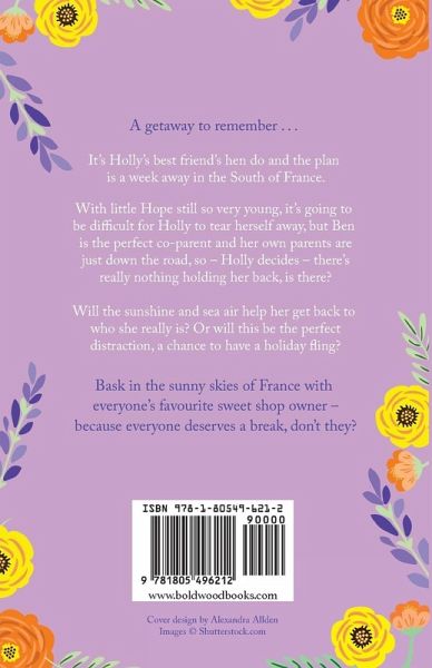 A getaway to remember... It's Holly's best friend's hen do and the plan is a week away in the South of France. With little Hope still so very young, it's going to be difficult for Holly to tear herself away, but Ben is the perfect co-parent and her own parents are just down the road, so - Holly decides - there's really nothing holding her back, is there? Will the sunshine and sea air help her get back to who she really is? Or will this be the perfect distraction, a chance to have a holiday fling? Bask in the sunny skies of France with everyone's favourite sweet shop owner - because everyone deserves a break, don't they?