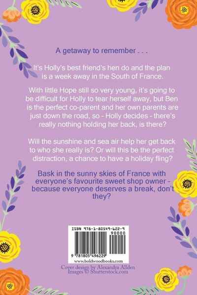 A getaway to remember... It's Holly's best friend's hen do and the plan is a week away in the South of France. With little Hope still so very young, it's going to be difficult for Holly to tear herself away, but Ben is the perfect co-parent and her own parents are just down the road, so - Holly decides - there's really nothing holding her back, is there? Will the sunshine and sea air help her get back to who she really is? Or will this be the perfect distraction, a chance to have a holiday fling? Bask in the sunny skies of France with everyone's favourite sweet shop owner - because everyone deserves a break, don't they?