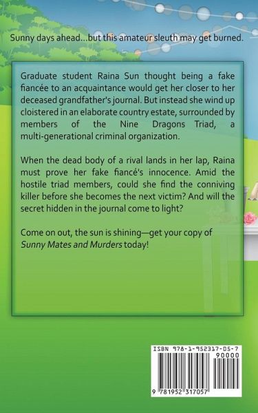 Raina Sun thought being a fake fiancée to an acquaintance would get her closer to her deceased grandfather's journal. But instead, she winds up cloistered in an elaborate country estate, surrounded by members of the Nine Dragons Triad, a multi-generational criminal organization. When the dead body of a rival lands in her lap, Raina must prove her fake fiancé's innocence. Amid the hostile triad members, could she find the conniving killer before she becomes the next victim? And will the secret hidden in the journal come to light? Come on out, the sun is shining--get your copy of "Sunny Mates and Murders" today!For readers who like cozy mysteries, quirky characters, and a dash of humor.
