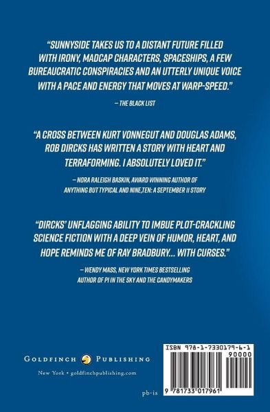 "Home isn't the place you come from. It's the place you stop trying to escape from."Brand New from #1 Audible Bestselling Author Rob Dircks... Everyman Theo Hoover accidentally becomes Grand Oversee - humanity's supreme leader - managing the terraforming of Sunnyside, their potential new home planet. But people are dying. Aliens are coming. His brother is missing. And Kate Kingston of all people has been assigned his Chief of Staff. But chaos is only the beginning, as the fate of Sunnyside - and humanity itself - comes to rest in Theo's shaky hands. With Sunnyside, Rob Dircks (#1 Audible Bestselling author of You're Going to Mars!, The Wrong Unit, and Where the Hell is Tesla?) has crafted a tale with a constant thread of his trademark humor and heart - a tale of First Contact, unlikely heroes, political mayhem, and everyday people trying to figure out what it means to be "home." "A distant future filled with irony, madcap characters, spaceships, a few bureaucratic conspiracies and an utterly unique voice with a pace and energy that moves at warp-speed." - The Black List