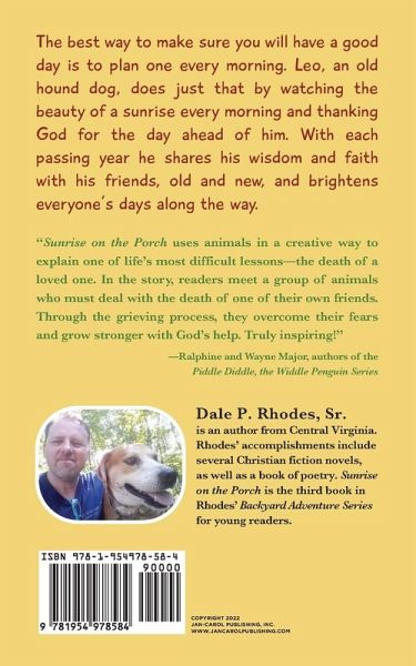 The best way to make sure you will have a good day is to plan one every morning. Leo, an old hound dog, does just that by watching the beauty of a sunrise every morning and thanking God for the day ahead of him. With each passing year, he shares his wisdom and faith with his friends, old and new, and brightens everyone's days along the way.