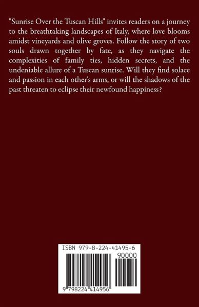 "Sunrise Over the Tuscan Hills" invites readers on a journey to the breathtaking landscapes of Italy, where love blooms amidst vineyards and olive groves. Follow the story of two souls drawn together by fate, as they navigate the complexities of family ties, hidden secrets, and the undeniable allure of a Tuscan sunrise. Will they find solace and passion in each other's arms, or will the shadows of the past threaten to eclipse their newfound happiness?