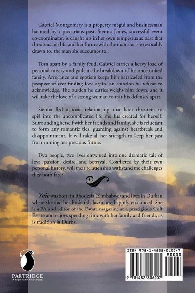 Gabriel Montgomery is a property mogul and businessman haunted by a precarious past. Sienna James, successful event co-coordinator, is caught up in her own tempestuous past that threatens her life and her future with the man she is irrevocably drawn to, the man she succumbs to. Torn apart by a family feud, Gabriel carries a heavy load of personal misery and guilt in the breakdown of his once united family. Arrogance and egotism keeps him barricaded from the prospect of ever finding love again, an emotion he refuses to acknowledge. The burden he carries weighs him down, and it will take the love of a strong woman to tear his defenses apart. Sienna fled a toxic relationship that later threatens to spill into the uncomplicated life she has created for herself. Surrounding herself with her friends and family, she is reluctant to form any romantic ties, guarding against heartbreak and disappointment. It will take all her strength to keep her past from ruining her precious future. Two people, two lives entwined into one dramatic tale of love, passion, desire, and betrayal. Conflicted by their own personal history, will their relationship withstand the challenges they both face?