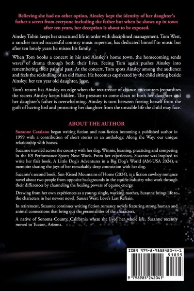 Cowboy Romance; clean, contemporary, wholesome Lost Love; love that endures life's challenges. Country music star; Dreams become reality. Childhood sweethearts; loved and lost. Secrets from the past; second chance to do the right thing. Father/daughter relationship; reuniting and growing. Redemption; through faith and perseverance, forgiveness can be found.