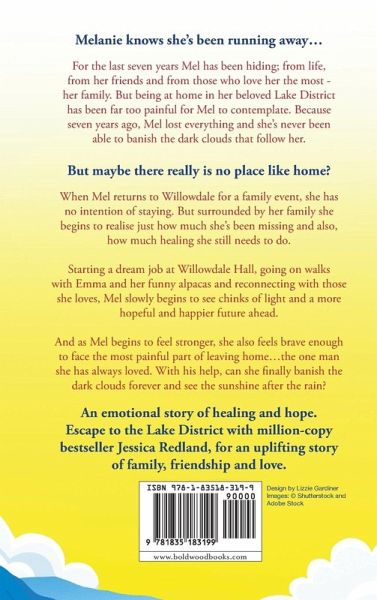 The BRAND NEW instalment in the uplifting Escape to the Lakes series from MILLION COPY BESTSELLER Jessica Redland Melanie knows she's been running away... For the last seven years Mel has been hiding; from life, from her friends and from those who love her the most - her family. But being at home in her beloved Lake District has been far too painful for Mel to contemplate. Because seven years ago, Mel lost everything and she's never been able to banish the dark clouds that follow her. But maybe there really is no place like home? When Mel returns to Willowdale for a family event, she has no intention of staying. But surrounded by her family she begins to realise just how much she's been missing and also, how much healing she still needs to do. Starting a dream job at Willowdale Hall, going on walks with Emma and her funny alpacas and reconnecting with those she loves, Mel slowly begins to see chinks of light and a more hopeful and happier future ahead. And as Mel begins to feel stronger, she also feels brave enough to face the most painful part of leaving home...the one man she has always loved. With his help, can she finally banish the dark clouds forever and see the sunshine after the rain? An emotional story of healing and hope. Escape to the Lake District with million-copy bestseller Jessica Redland, for an uplifting story of family, friendship and love. Praise for Jessica Redland: 'Jessica Redland writes from the heart, with heart, about heart' Nicola May 'A heartwarming story of true friendship, love and romance set in the gorgeous backdrop of the Lakes. A cosy hug of a read that left me feeling warm inside.' Julie Caplin on The Start of Something Wonderful 'I enjoyed a wonderful escape to the Lake District in this tale of loss, love and rediscovery.' Gillian Harvey on The Start of Something Wonderful 'A heartwarming story set in a beautiful location... Love, friendship and the power of letting go are all covered in this gorgeous, beautifully written story.' Katie Ginger on The Start of Something Wonderful 'I loved my trip to Hedgehog Hollow. An emotional read, full of twists and turns' Heidi Swain 'The Hedgehog Hollow series is a tonic I'd recommend for everyone. There is so much to make you smile in Jessica's stories and they are always uplifting reads, which will make you really glad you decided to pick up a copy.' Jo Bartlett 'An emotional, romantic and ultimately uplifting read. Jessica always touches my heart with her sensitive handling of difficult subjects. The gorgeous community she has built around Hedgehog Hollow is one I hope to visit again and again.' Sarah Bennett 'A beautifully written series that offers the ultimate in heartwarming escapism.' Samantha Tonge on the Hedgehog Hollow series 'Hedgehog Hollow is a wonderful series that has found a special place of its own deep in the hearts of readers, including mine.' Jennifer Bohnet 'A warm hug of a book. I never wanted to leave Hedgehog Hollow.' Della Galton 'A heart-warming ride that navigates broken hearts and painful secrets, but ultimately restores your faith in the power of love. I adored it.' Jenni Keer 'I fell in love with this story from page one.' Helen Rolfe 'A tender love story, full of sweet touches and beautiful characters.' Beth Moran 'A warm-hearted and beautiful book. Jessica Redland doesn't shy away from the fact that life can be difficult, but she reminds us that we all can find love, hope and joy again.' Sian O'Gorman