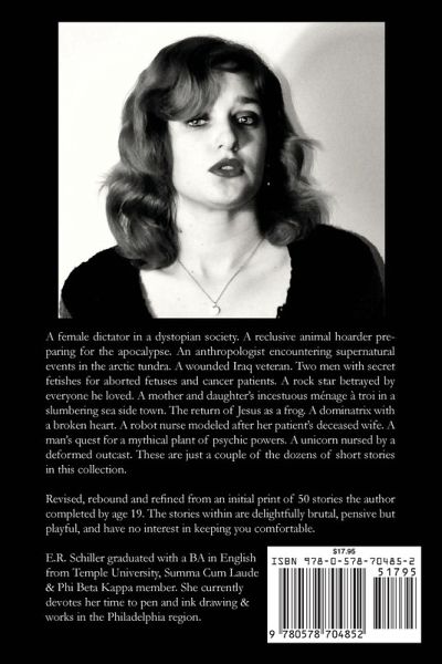 A female dictator in a dystopian society. A reclusive animal hoarder preparing for the apocalypse. An anthropologist encountering supernatural events in the arctic tundra. A wounded Iraq veteran. A rock star betrayed by everyone he loved. A mother and daughter's incestuous ménage à troi in a slumbering sea side town. The return of Jesus as a frog. A dominatrix with a broken heart. A robot nurse modeled after her patient's deceased wife. A man's quest for a mythical plant of psychic powers. A unicorn nursed by a deformed outcast. These are just a couple of the dozens of short stories in this collection. Revised, rebound and refined from an initial print of 50 stories the author completed by age 19. The stories within are delightfully brutal, pensive but playful, and have no interest in keeping you comfortable.