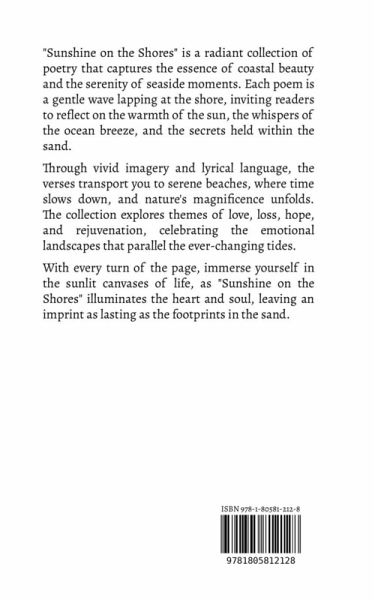 "Sunshine on the Shores" is a radiant collection of poetry that captures the essence of coastal beauty and the serenity of seaside moments. Each poem is a gentle wave lapping at the shore, inviting readers to reflect on the warmth of the sun, the whispers of the ocean breeze, and the secrets held within the sand. Through vivid imagery and lyrical language, the verses transport you to serene beaches, where time slows down, and nature's magnificence unfolds. The collection explores themes of love, loss, hope, and rejuvenation, celebrating the emotional landscapes that parallel the ever-changing tides. With every turn of the page, immerse yourself in the sunlit canvases of life, as "Sunshine on the Shores" illuminates the heart and soul, leaving an imprint as lasting as the footprints in the sand.